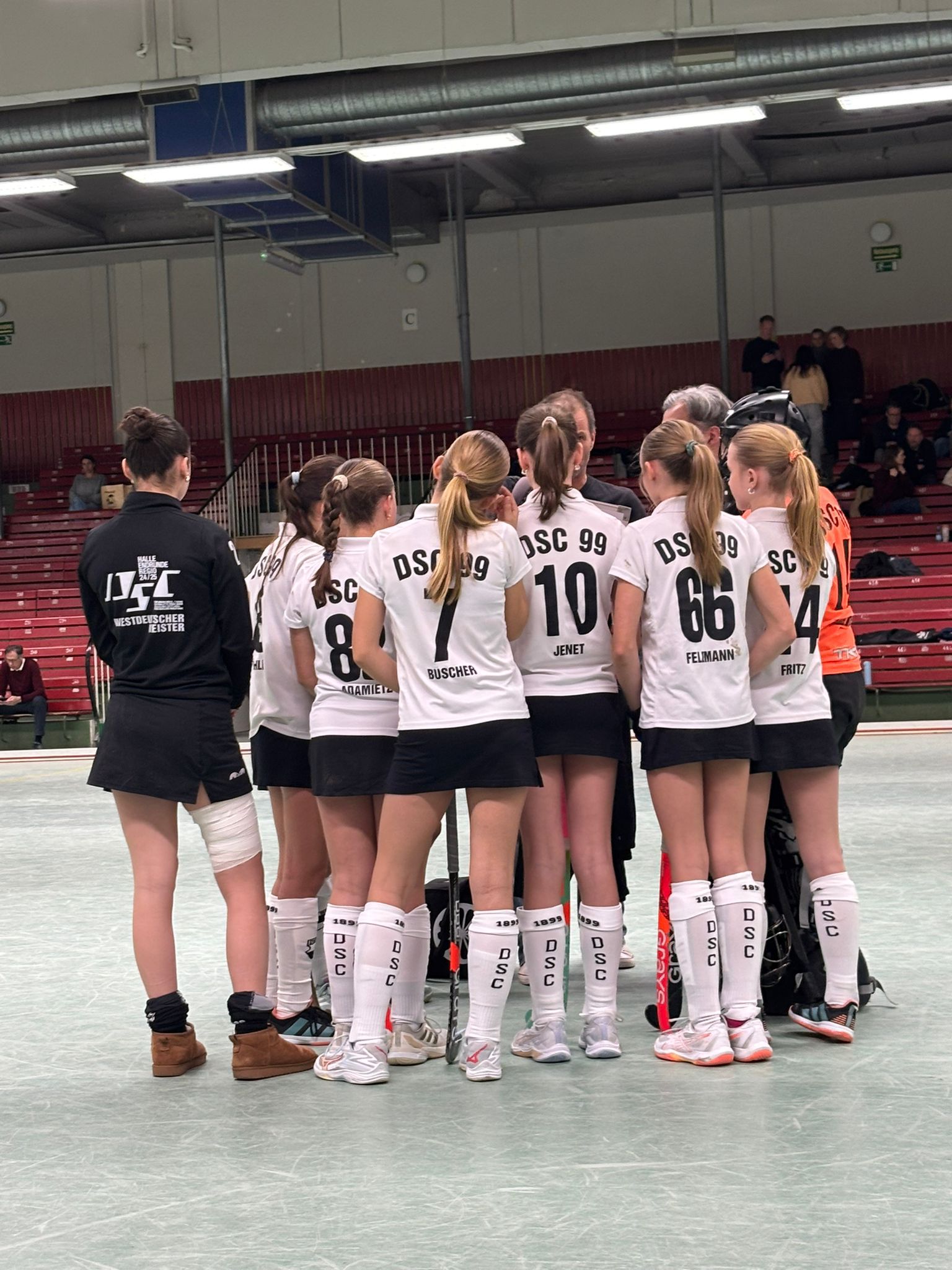 Unsere WU14 hat sich für die Westdeutsche Endrunde qualifiziert. An der Endrunde nehmen die jeweils drei besten Mannschaften aus zwei Gruppen teil. Sie treten in einer Hin- und Rückrunde an insgesamt vier Spieltagen gegeneinander an. Die Tabellenersten gewinnen die Westdeutsche Meisterschaft und nehmen mit den Tabellenzweiten an der Deutschen Meisterschaft teil.