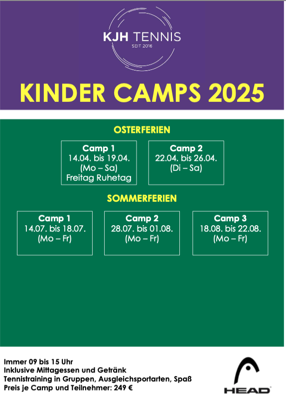 Die KJH-Tennisschule bietet regelmäßig in den Oster- und Sommerferien Tenniscamps für Kinder und Jugendliche an.